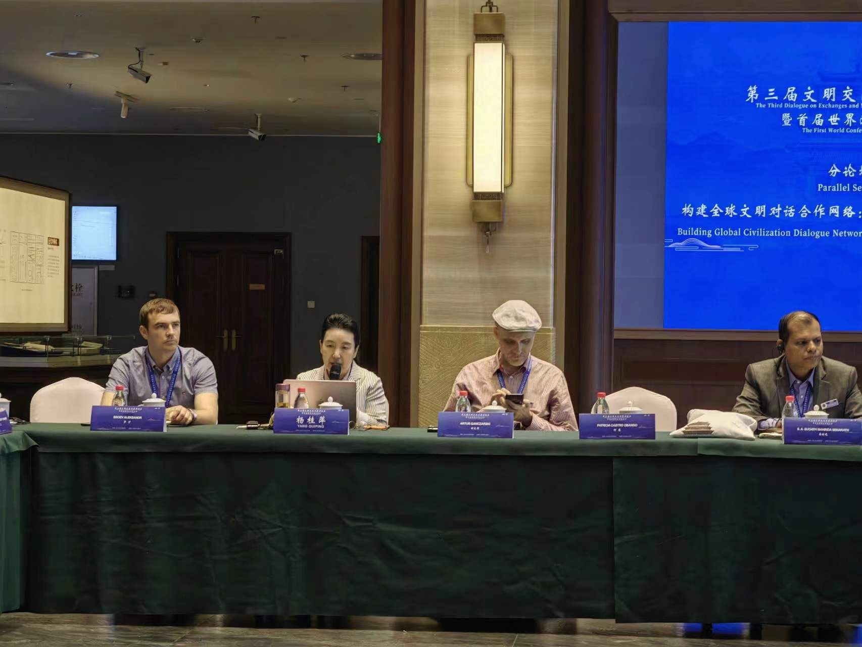 中国国家副主席韩正出席会议并致辞。全国人大常委会副委员长、中国国际交流协会会长吉炳轩,中非共和国团结一心运动全国执行书记、国民议会议长萨兰吉,马来西亚民主行动党中央执委、国会下议院副议长刘强燕女士,毛里塔尼亚公正党副主席哈拉迈,联合国文明联盟高级代表莫拉蒂诺斯等人致辞。来自80多个国家和地区的政要、外交使节、专家学者和汉学家约400人出席线下会议。